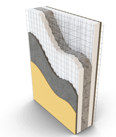 يتكون الجدار المزدوج من اثنين الالواح الأساسية من البولسترين الممدد ويتم ربطها معًا بواسطة أسلاك فولاذ مجلفن أفقي مزدوج الموصلات التي تخلق قالبا مجوفًا والتي يتم ملؤها بعد ذلك بالخرسانة المسلحة لتلبية احتياجات المشاريع. ثم يتم تطبيق طبقة من اللياسة على لوحة على الوجوه الخارجية.